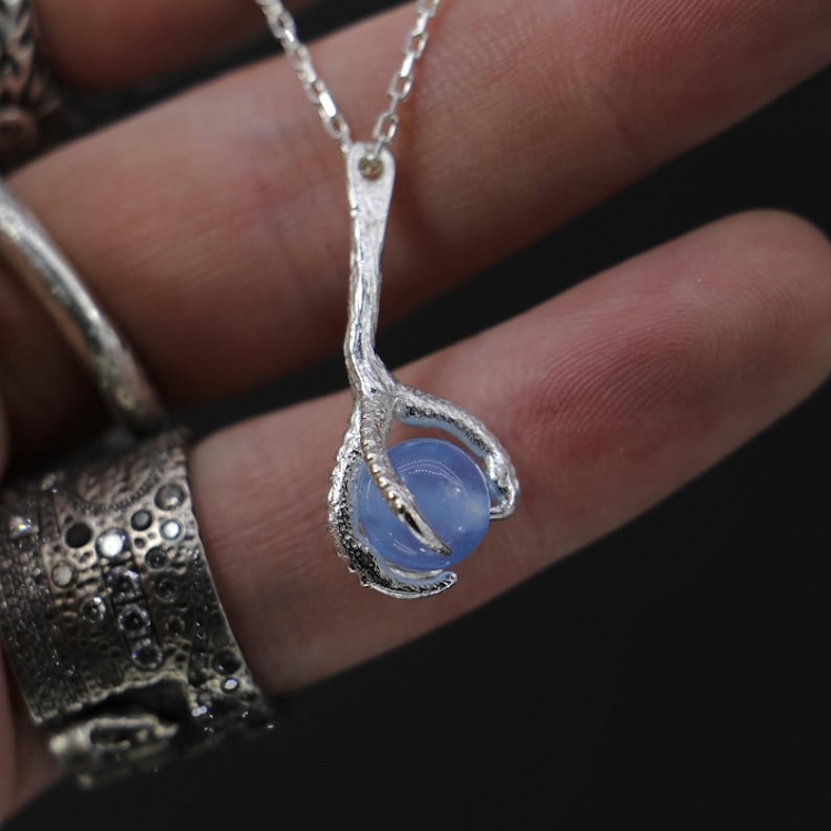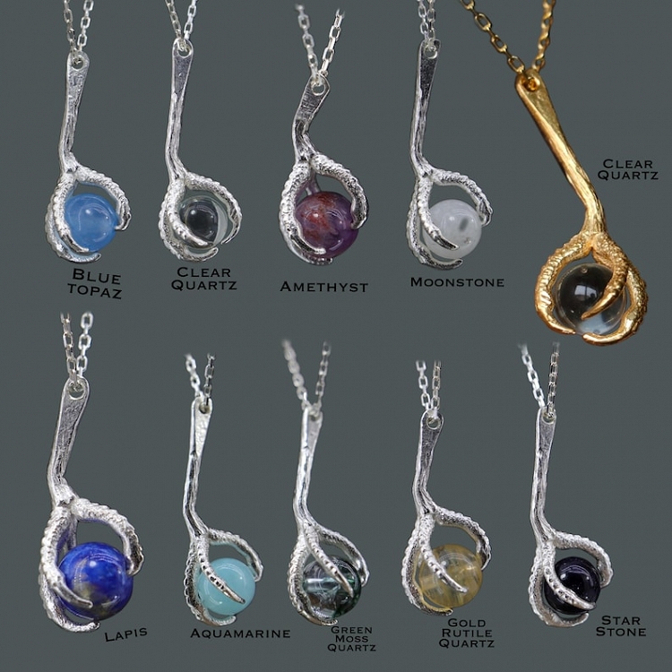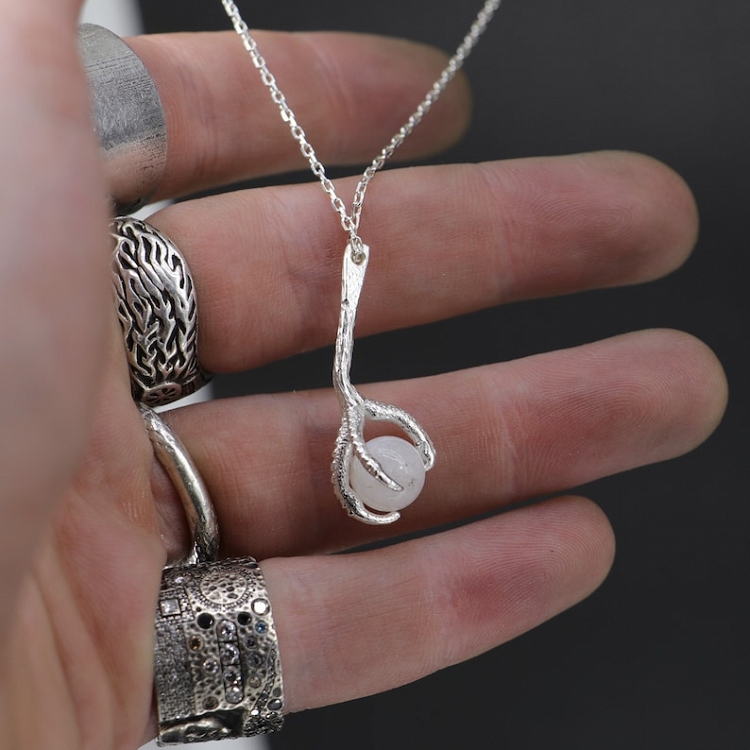 • Pendant: Detailed crow claw / bird foot design holding a moonstone
