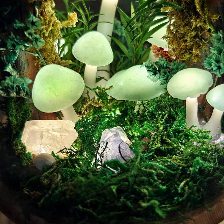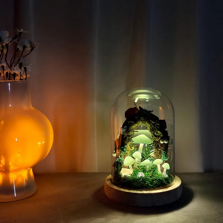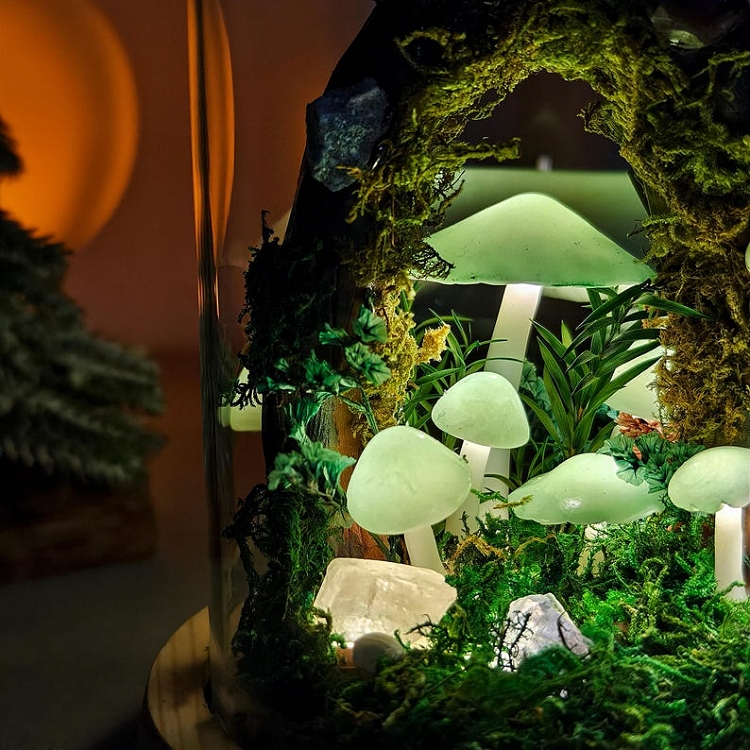 Each lamp is 100% handmade, so every mushroom shape and botanical arrangement is truly one of a kind.