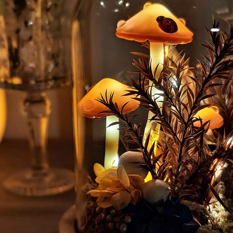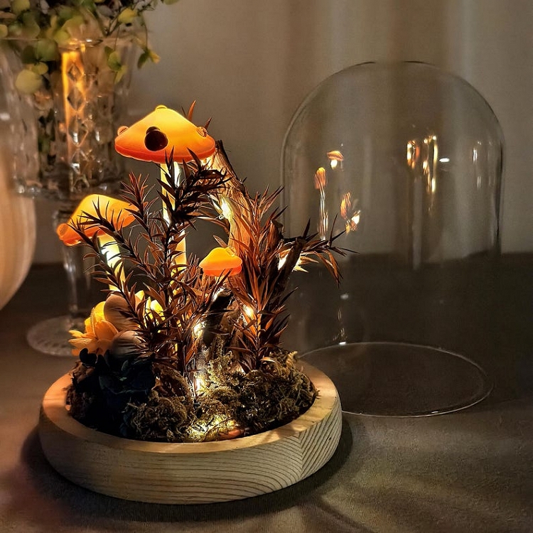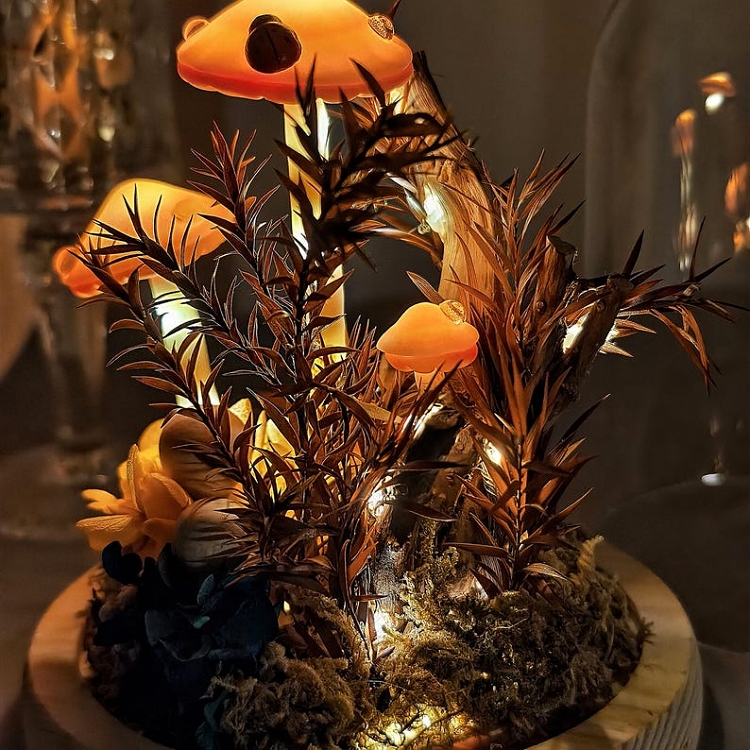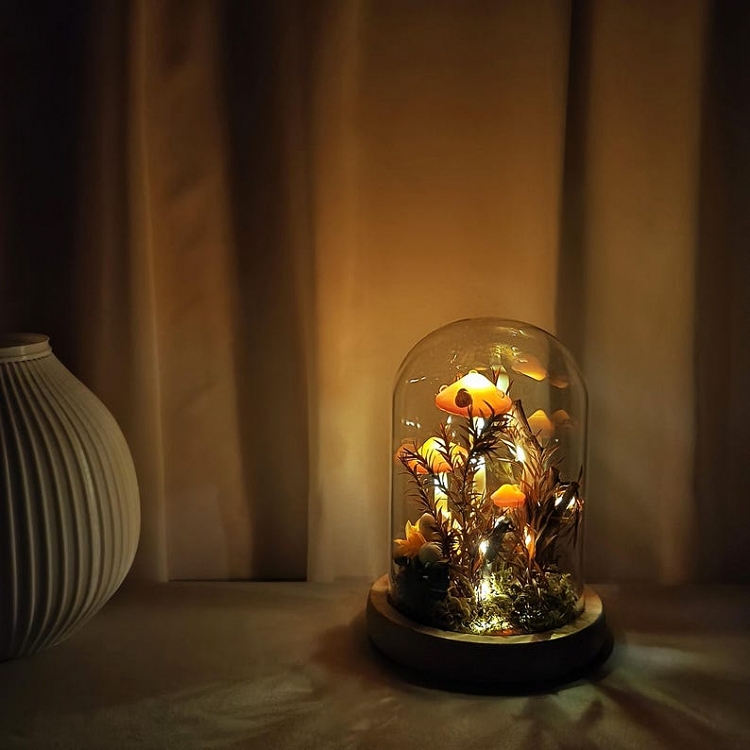 Each lamp is 100% handmade, so every mushroom shape and botanical arrangement is truly one of a kind.