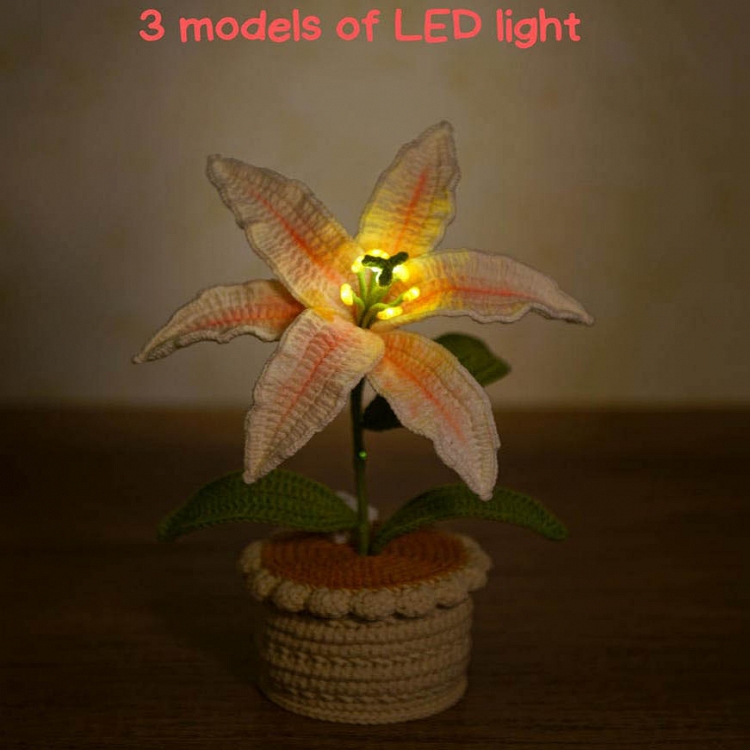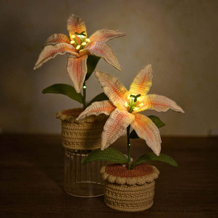 Made with premium milk cotton yarn, every flower features delicate crochet details that give the lamp an artistic, one-of-a-kind look. The lifelike blooms add a graceful and cozy touch to bedrooms, living rooms, or nurseries.