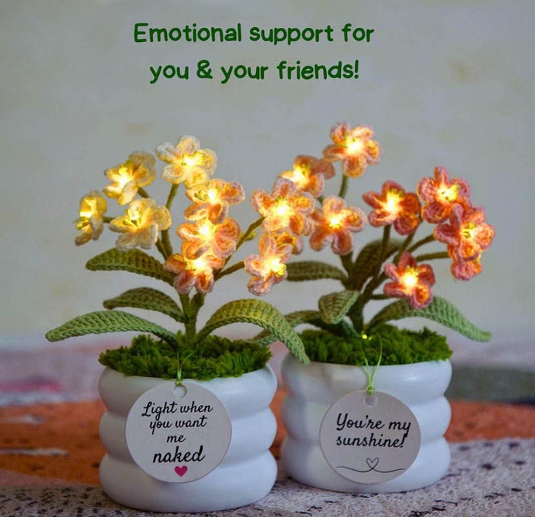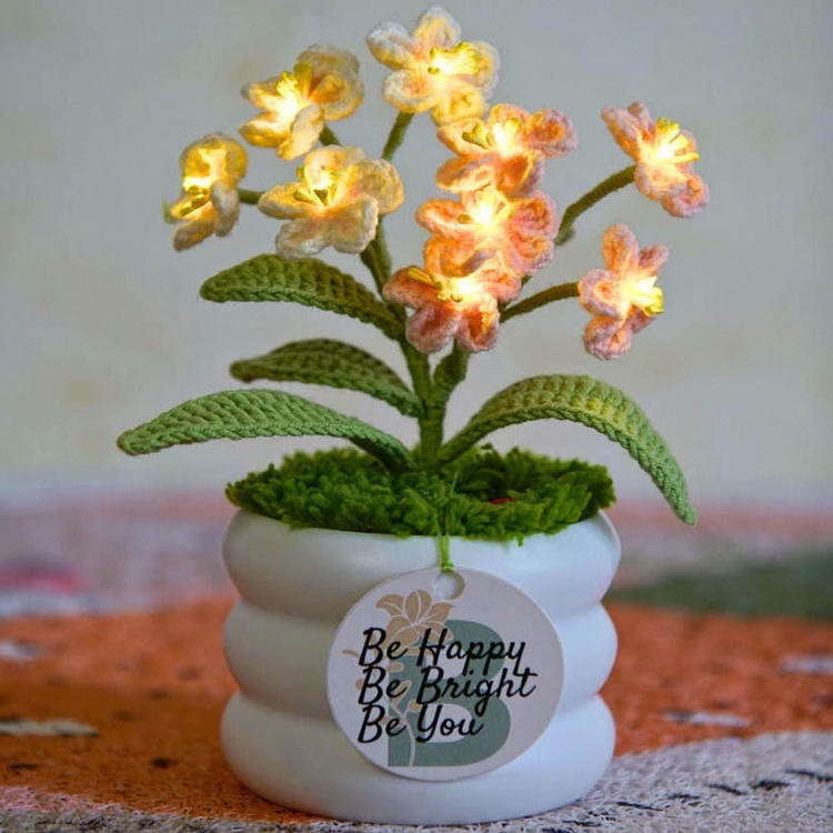 Made with premium milk cotton yarn, every flower features delicate crochet details that give the lamp an artistic, one-of-a-kind look. The lifelike blooms add a graceful and cozy touch to bedrooms, living rooms, or nurseries.