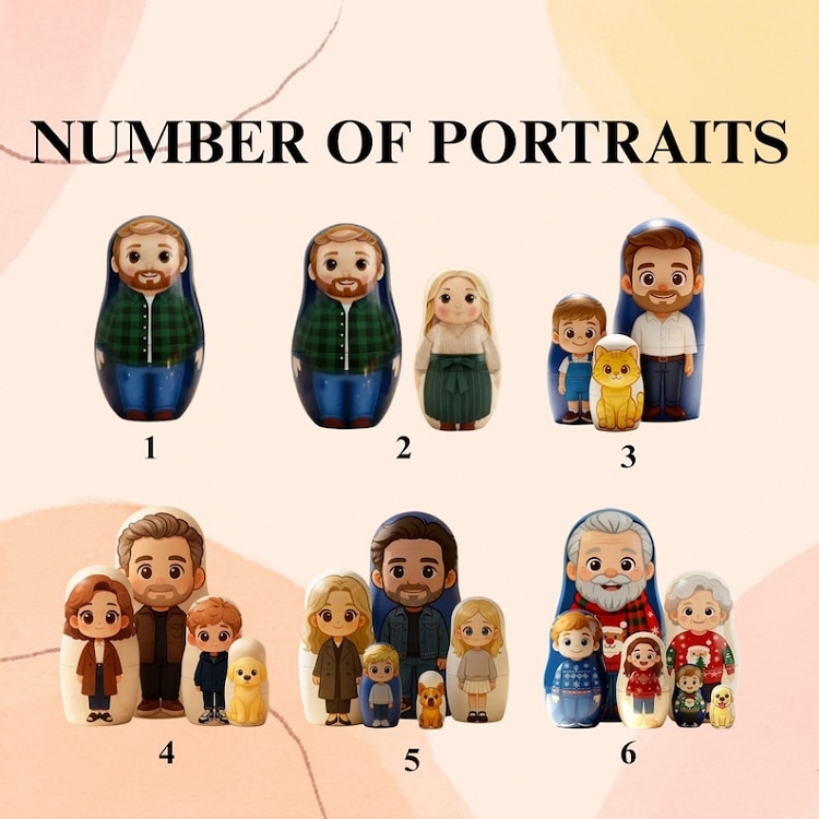 Add joy, personality, and a touch of whimsy to your home with our Custom Photo Nesting Dolls. Each doll is created from your photos and transformed into a charming cartoon-style portrait that captures the spirit and individuality of the people you love most.