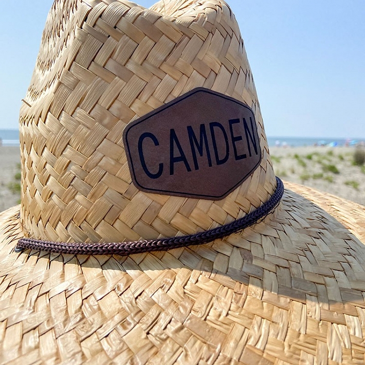 Custom Straw Sun Hat with Faux Leather Name Patch – Personalized for Baby, Toddler, Kids & Adults