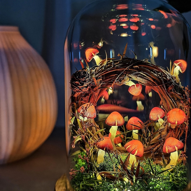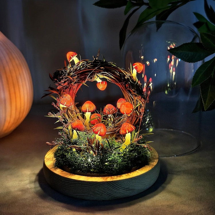 Each lamp is 100% handmade, so every mushroom shape and botanical arrangement is truly one of a kind.