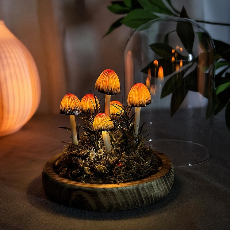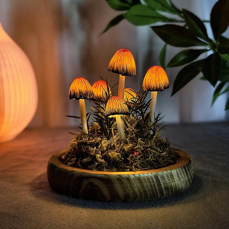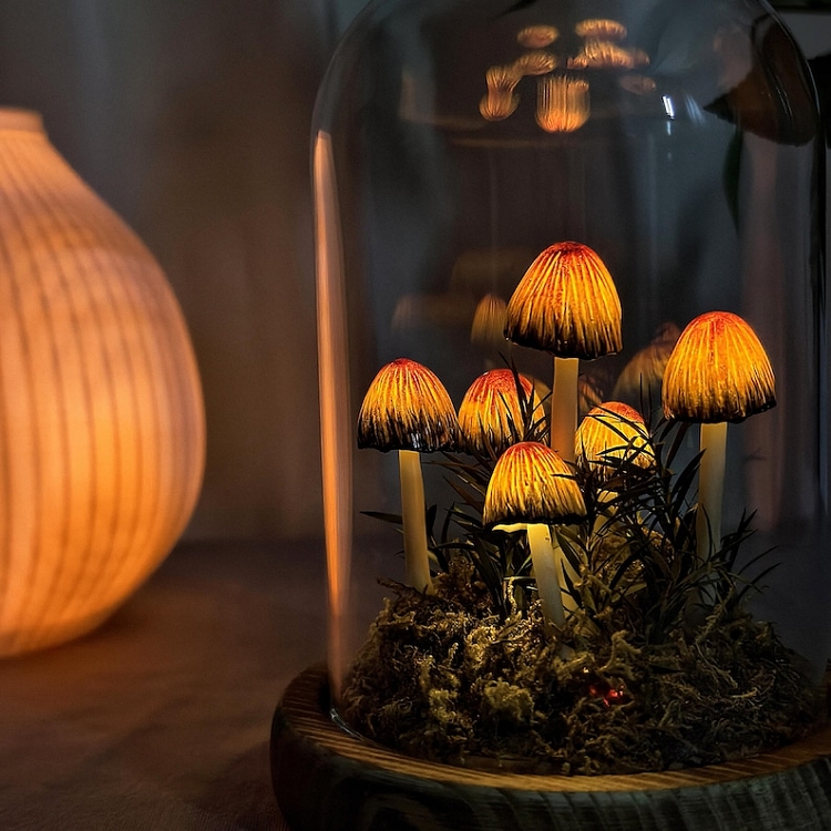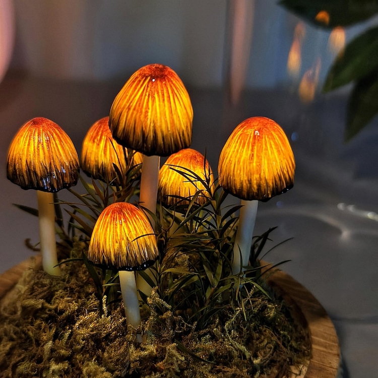 Each lamp is 100% handmade, so every mushroom shape and botanical arrangement is truly one of a kind.