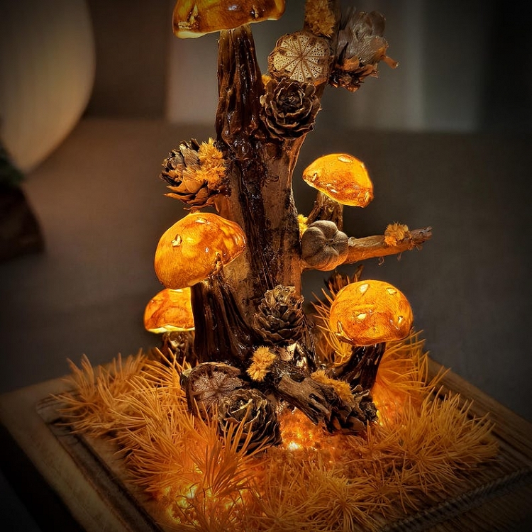 Each lamp is 100% handmade, so every mushroom shape and botanical arrangement is truly one of a kind.
