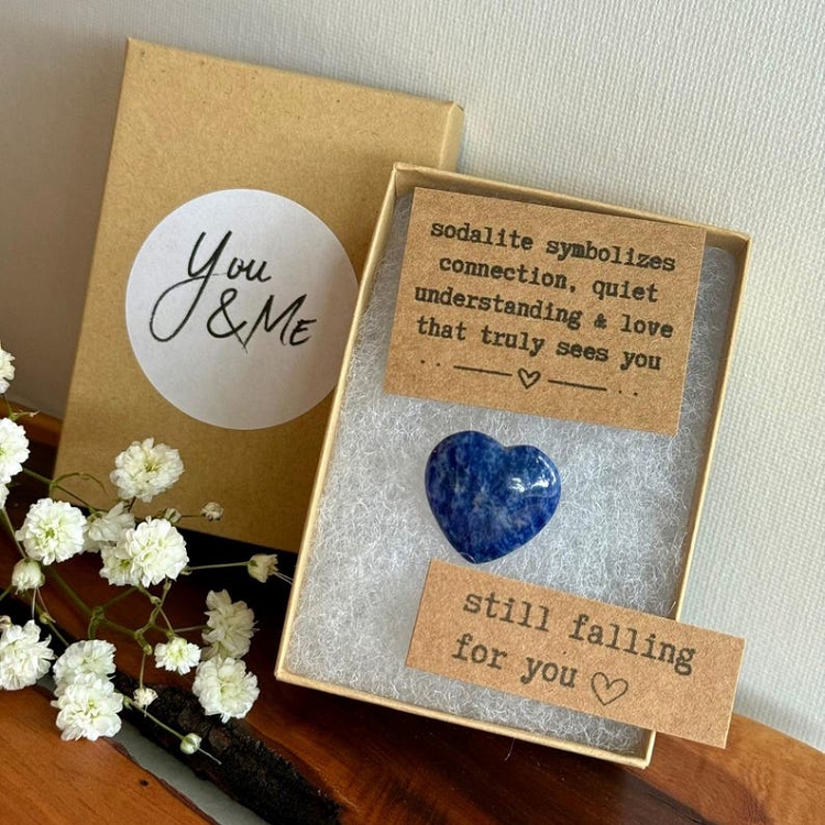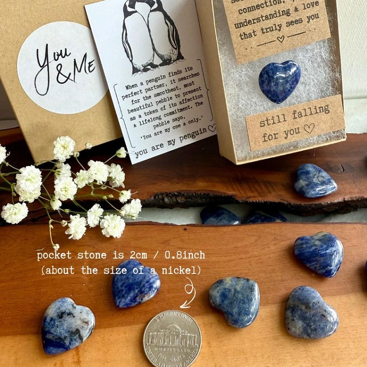 Penguins are known for choosing one partner for life—and when they do, they offer a smooth pebble as a symbol of their lifelong bond. Inspired by this touching tradition, this heart-shaped sodalite crystal carries a quiet but powerful message: Still falling for you. It's a sweet, sentimental way to celebrate the love and connection you share.