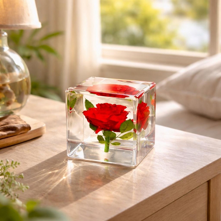 This real preserved flower sealed in crystal-clear resin represents eternal love — just like a mother’s love.